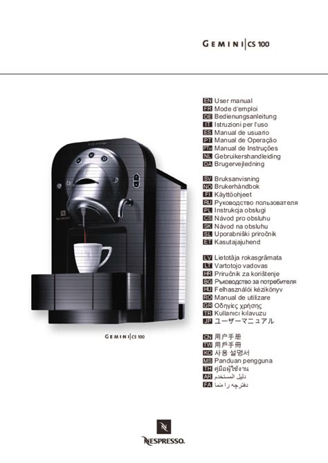 Presently you are looking regarding an Nespresso Gemini Cs 100 User Manual example that will we provide here inside some type of document formats such as PDF, Doc, Energy Point, and in addition images that will will make it easier for you to create an Nespresso Gemini Cs 100 User Manual yourself. For a more clear look, you may open several examples below. Each of the illustrations about Nespresso Gemini Cs 100 User Manual on this site, we get from several sources so you could create a better document of your own.If the search you get here does not match what you are seeking for, please make use of the search feature that we have got provided here. You are free to download anything at all that we provide in this article, investment decision you won't cost you the slightest.